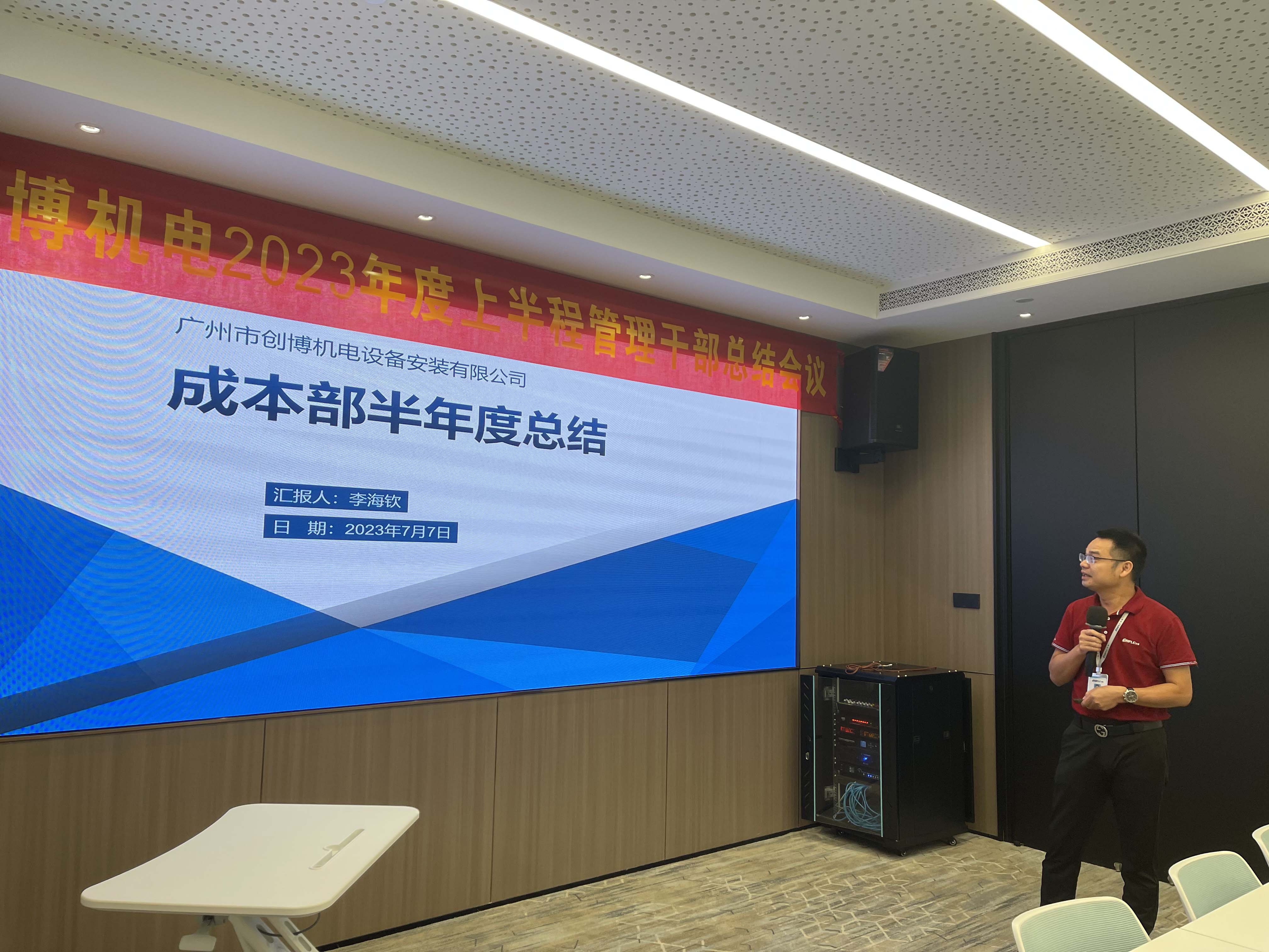 廣州市創(chuàng)博機電設(shè)備安裝有限公司,總經(jīng)辦及各部門中層管理人員在公司總部多媒體會議室,召開為期2天的2023年管理人員年中總結(jié)會議,本次會議圍繞“確保增長、流程閉環(huán)”為主題展開討論。