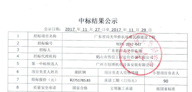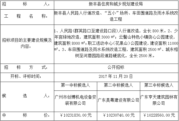 新豐縣人民路人行道改造、“五小”場所、車田圍道路及雨水系統(tǒng)改造工程施工招標評標結果公示!!!