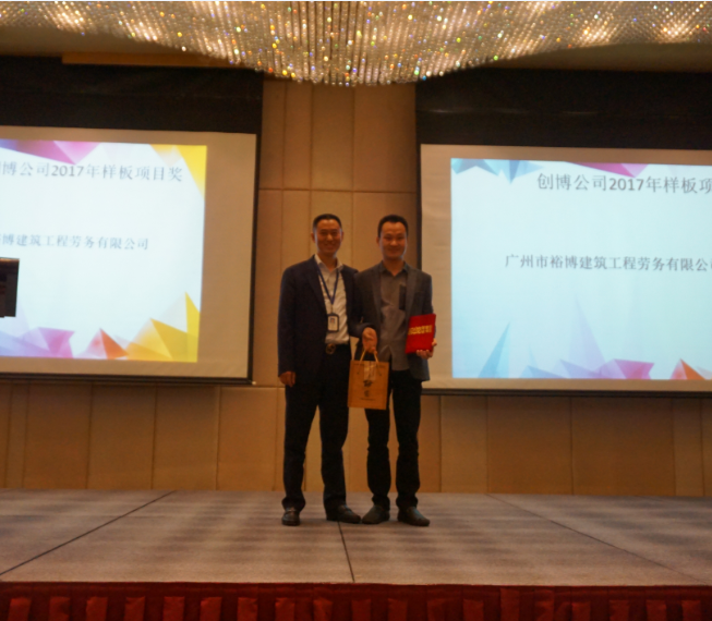 為感謝供應(yīng)商單位及勞務(wù)施工班組的支持,古雄新(佛山分公司總經(jīng)理)為3家公司頒發(fā)了“優(yōu)秀合作供應(yīng)商”獎(jiǎng),劉和森(營(yíng)銷部總監(jiān))為3個(gè)班組頒發(fā)了“優(yōu)秀合作伙伴”獎(jiǎng),總經(jīng)理李文憑先生頒發(fā)了“標(biāo)桿項(xiàng)目”獎(jiǎng)。