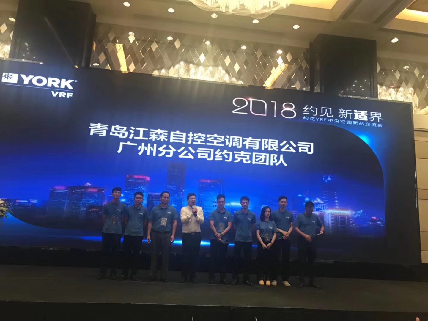 6月5日晚青島江森自控空調(diào)有限公司在廣州地區(qū)召開了“2018 約見 新適界”,廣州區(qū)代理商會 議,公司也正式成為約克品牌廣州區(qū)域代理商,2018年我們的新征程、新團隊、新高度起航。