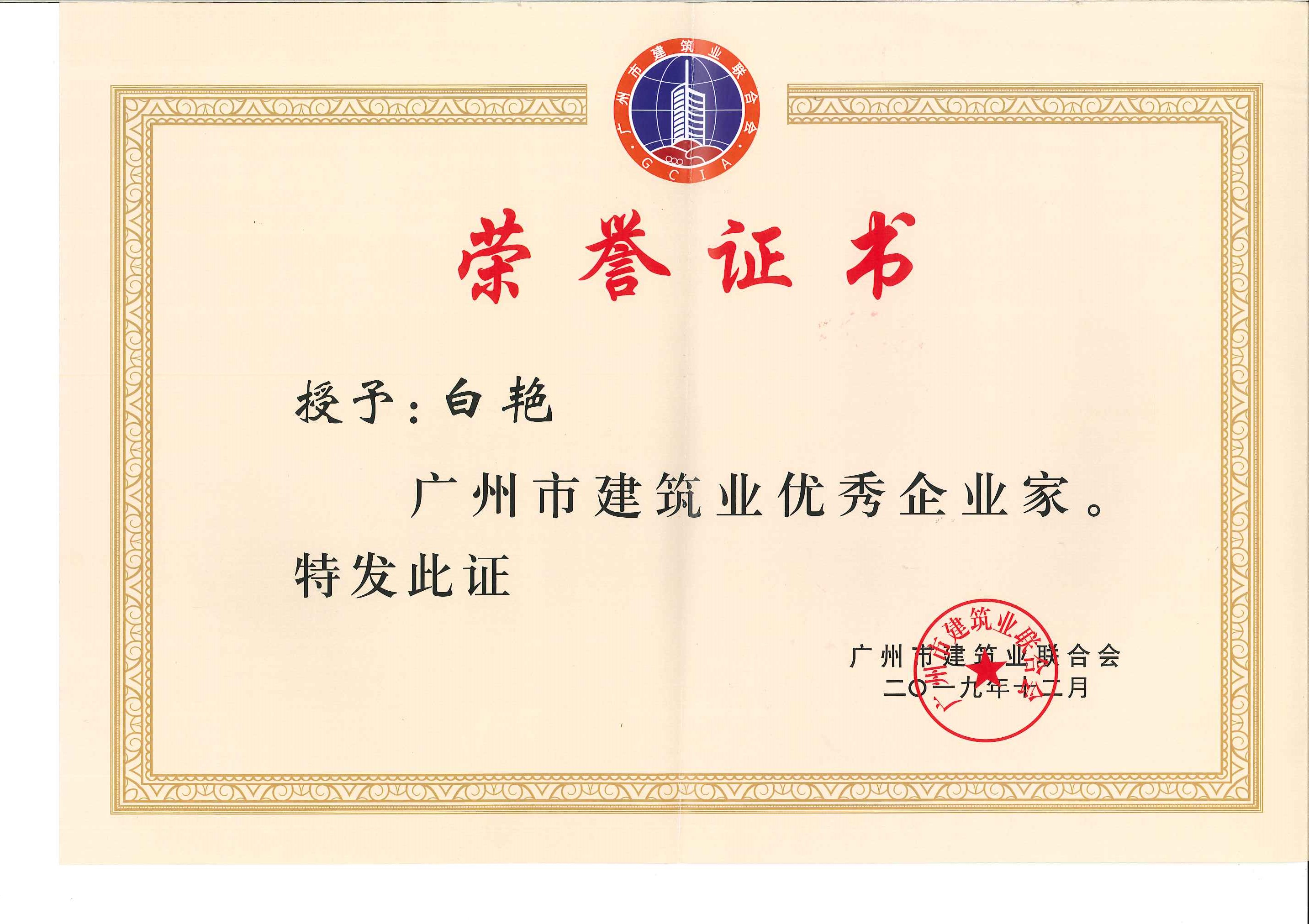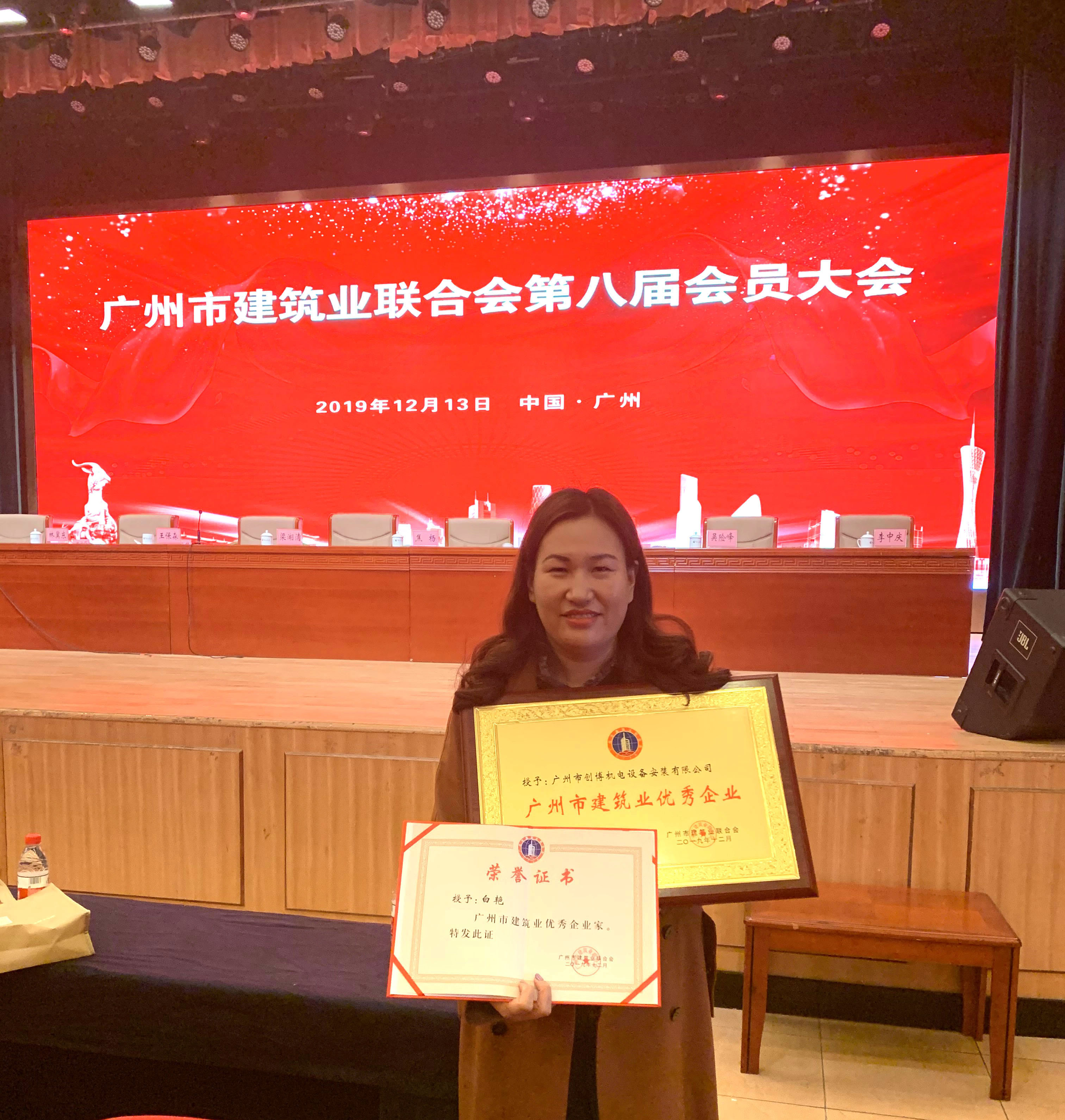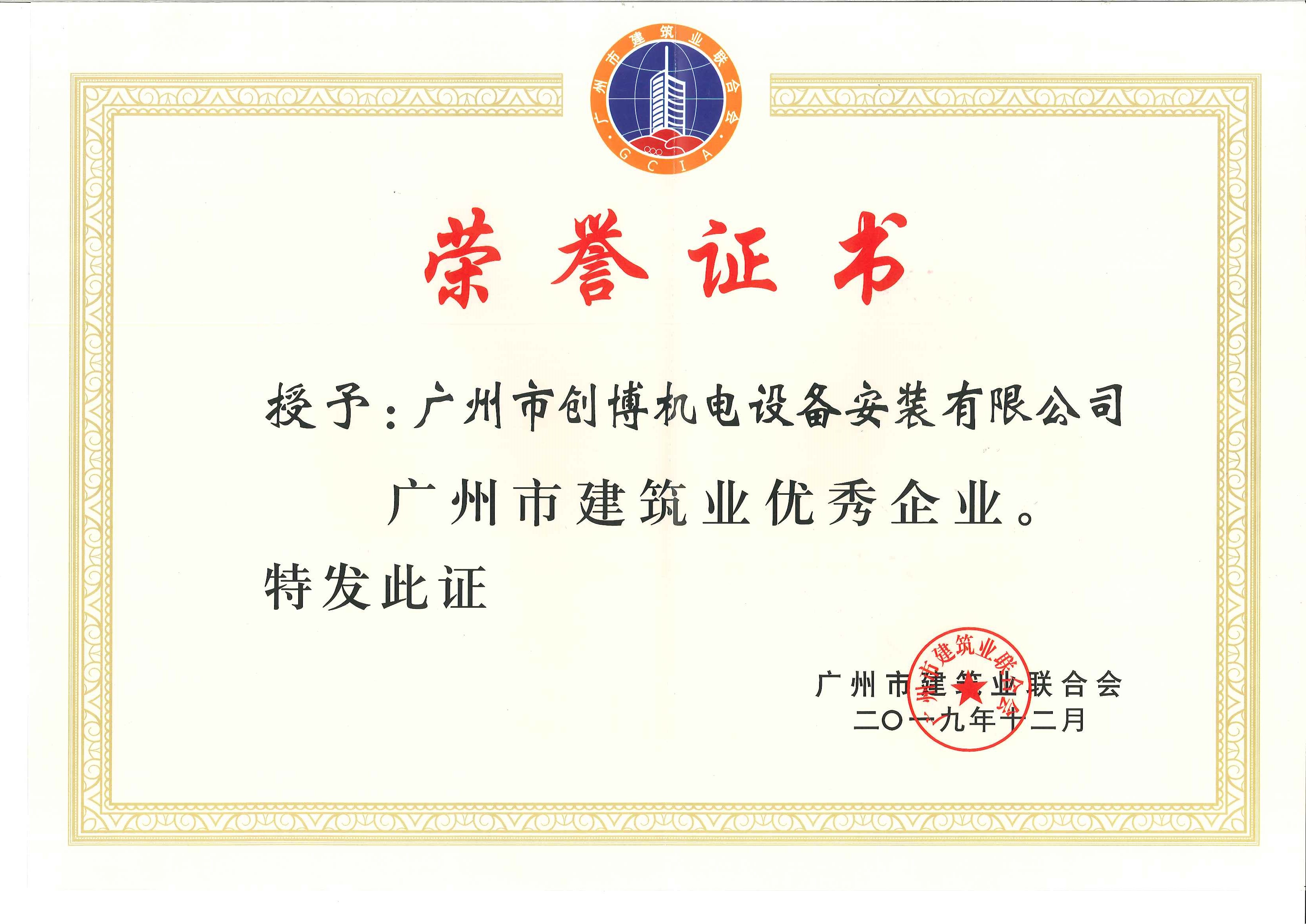 2019年12月13日,廣州市建筑業(yè)聯(lián)合會第八屆會員大會在珠江賓館準時召開,我司分別獲得“廣州市建筑業(yè)優(yōu)秀企業(yè)” 和“廣州市建筑業(yè)優(yōu)秀企業(yè)家”稱號。