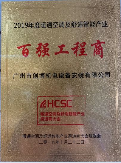 2019年10月23日,我司在第三屆暖通空調(diào)及舒適智能產(chǎn)業(yè)渠道商大會(huì),獲得“百強(qiáng)工程商“稱號!