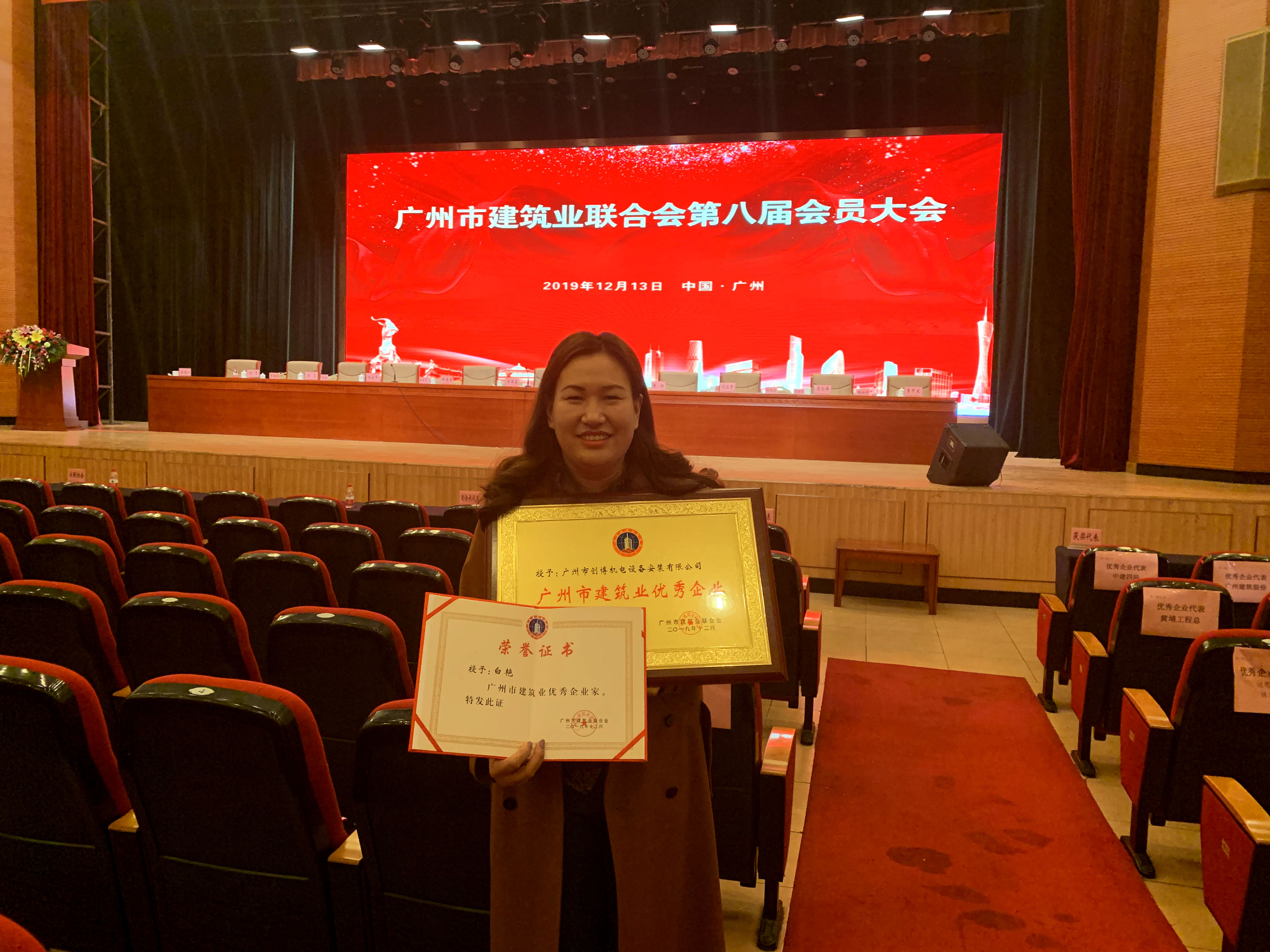 2019年12月13日,廣州市建筑業(yè)聯(lián)合會(huì)第八屆會(huì)員大會(huì),我司分別榮獲“廣州市建筑業(yè)優(yōu)秀企業(yè)”和“廣州市建筑業(yè)優(yōu)秀企業(yè)家”稱號。