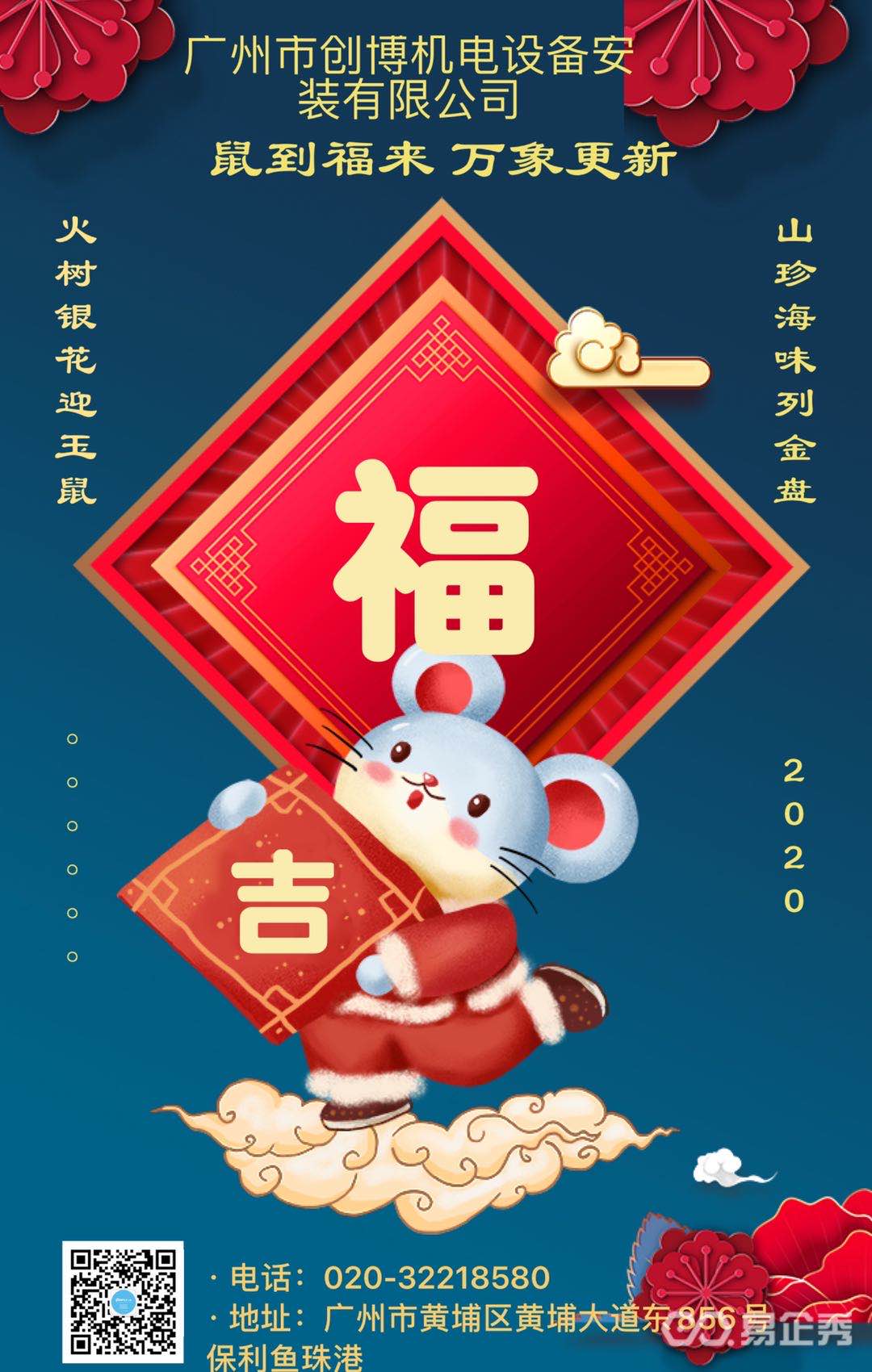 廣州市創(chuàng)博機(jī)電設(shè)備安裝有限公司祝大家:新年快樂 鼠年大發(fā) 鼠年行大運(yùn)!