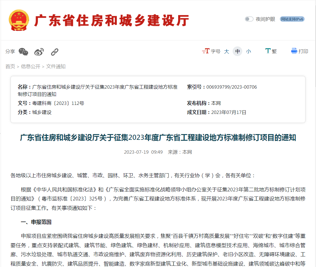 · 廣東省住房和城鄉(xiāng)建設(shè)廳關(guān)于征集2023年度廣東省工程建設(shè)地方標準制修訂項目的通知